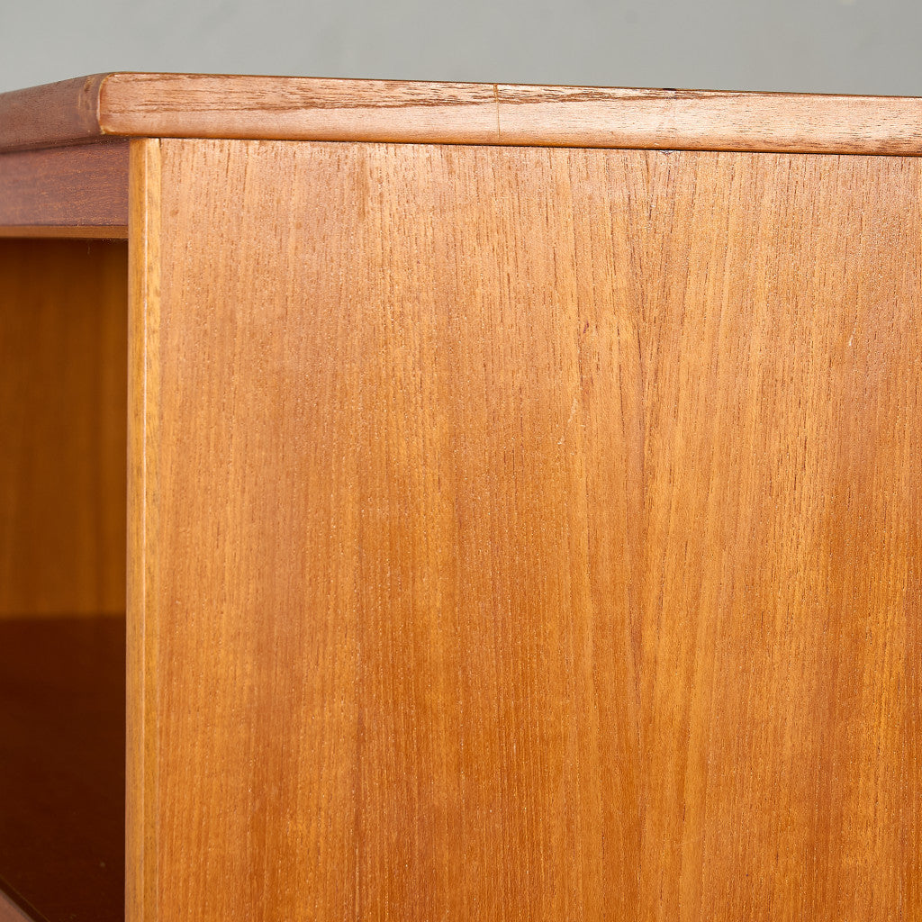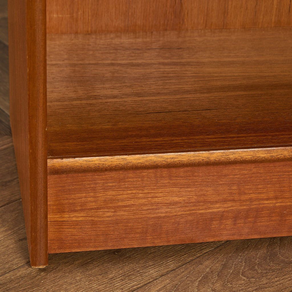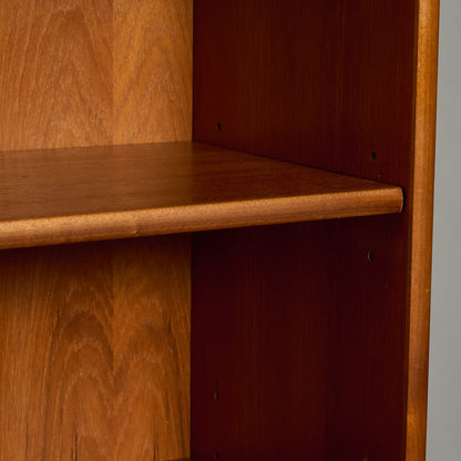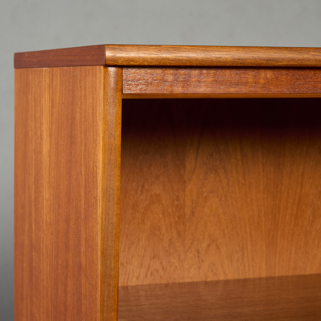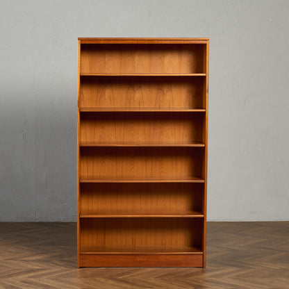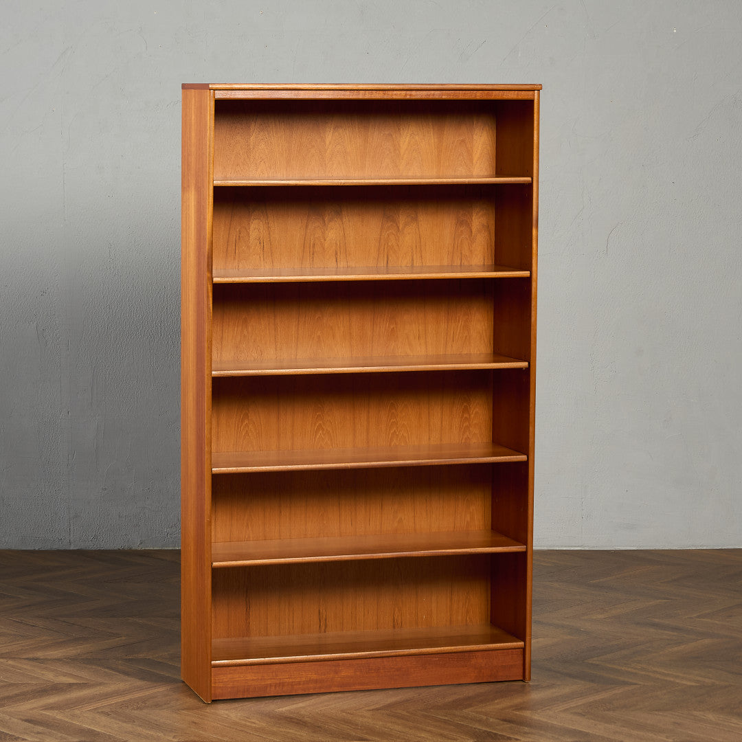 チーク材を使用した、オープン仕様のブックシェルフ。シンプルながらも細部に作り手のこだわりを感じるヴィンテージファニチャーです。スリムなので使い勝手がよく、高さに充分なスペースがあるため収納力も豊富です。