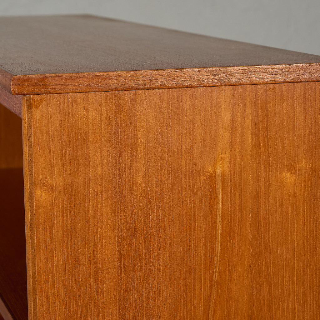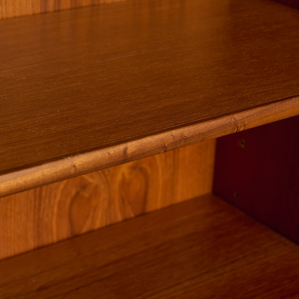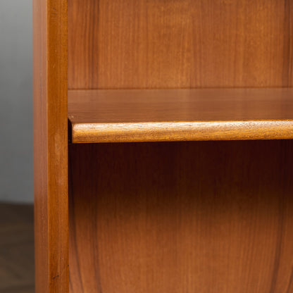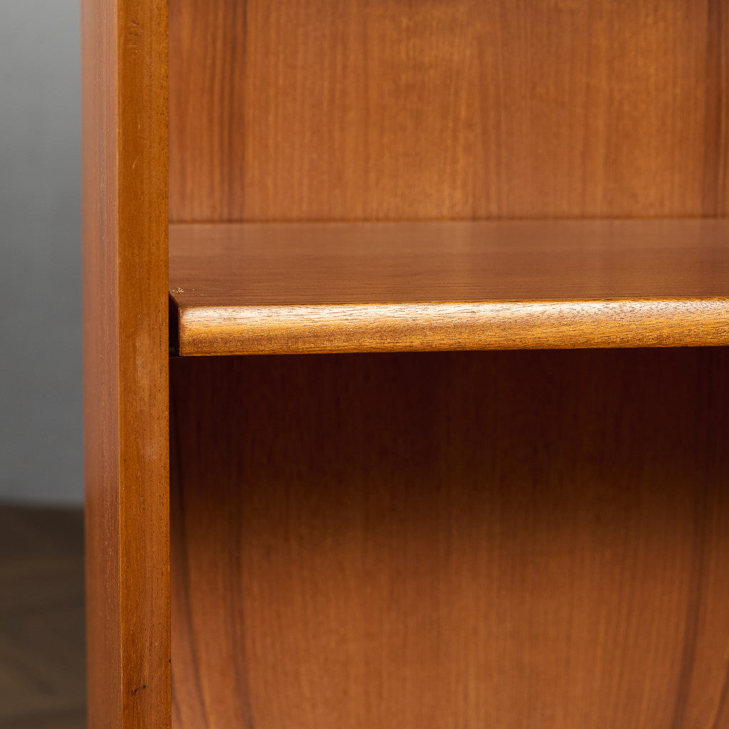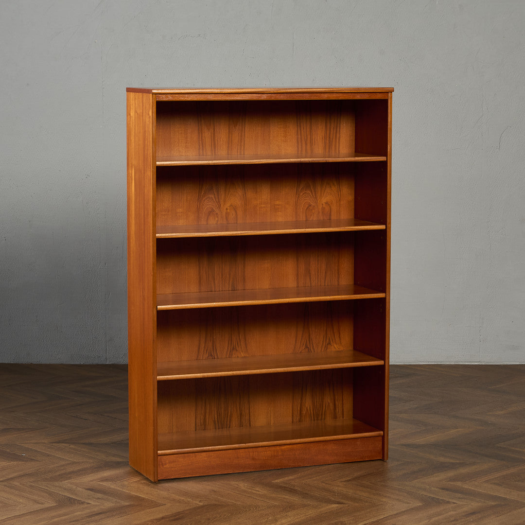 チーク材を使用した、オープン仕様のブックシェルフ。シンプルながらも細部に作り手のこだわりを感じるヴィンテージファニチャーです。コンパクトで使い勝手がよく、収納力に優れたお品です。