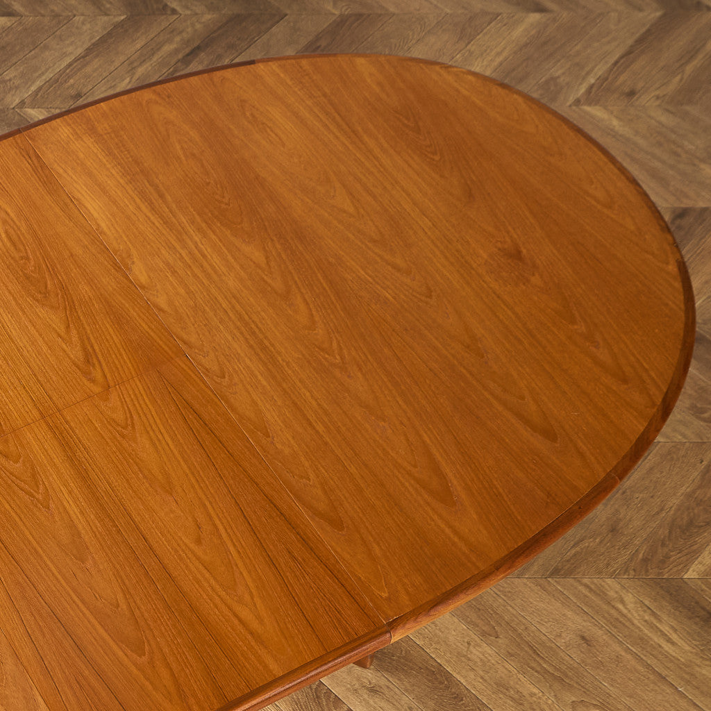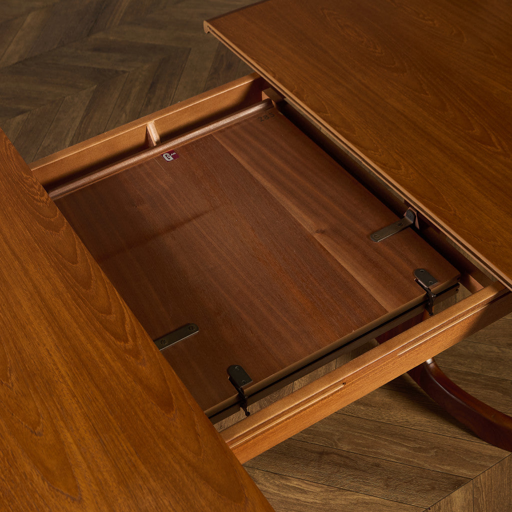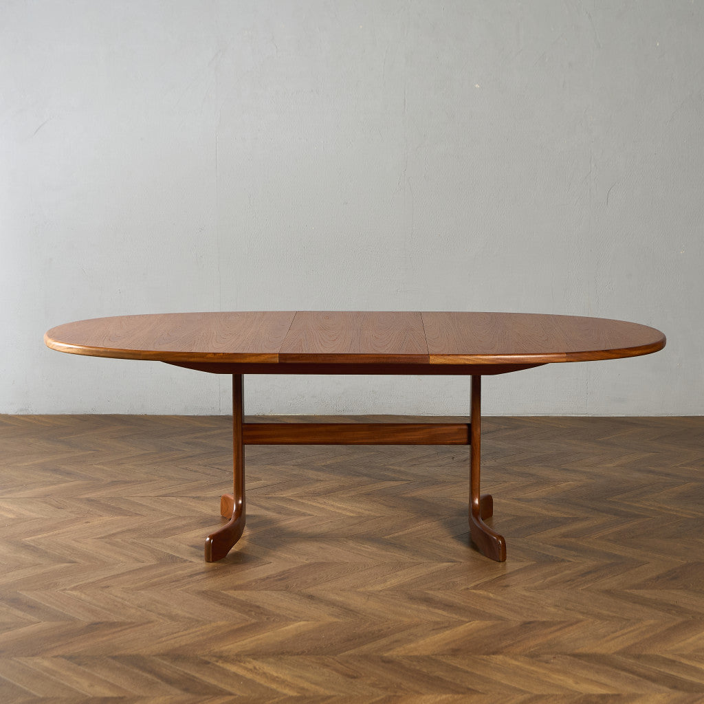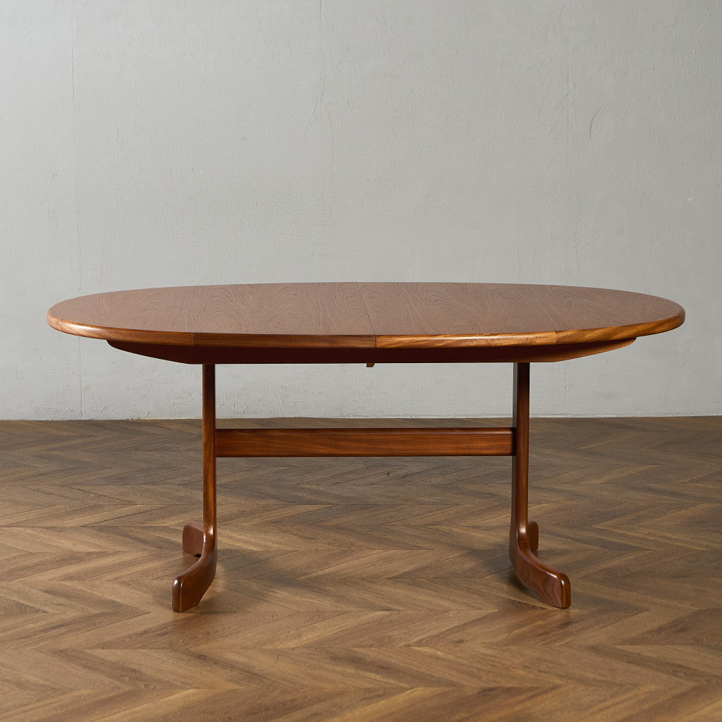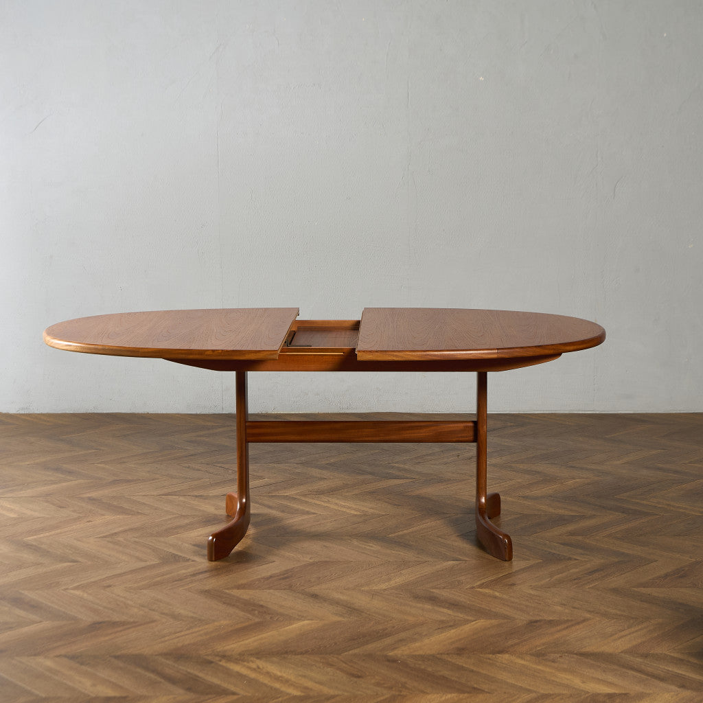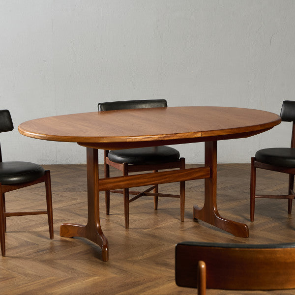 イギリスにおいてミッドセンチュリーを代表する G-PLAN(ジープラン) による、Victor Bramwell Wilkins(ビクター・ブラムウェル・ウィルキンス)デザイン、Fresco(フレスコ) ホイールレッグ エクステンション オーバルダイニングテーブルです。