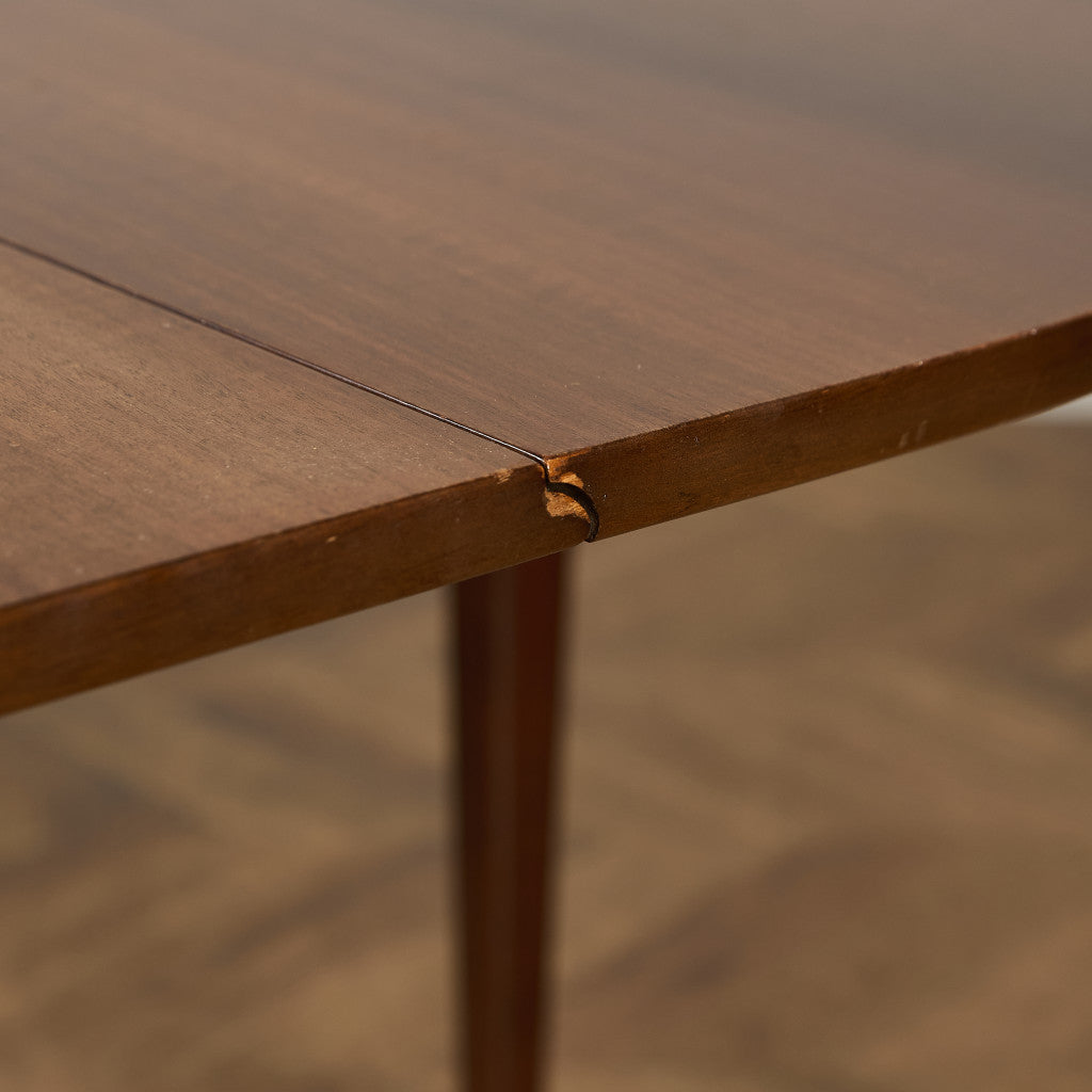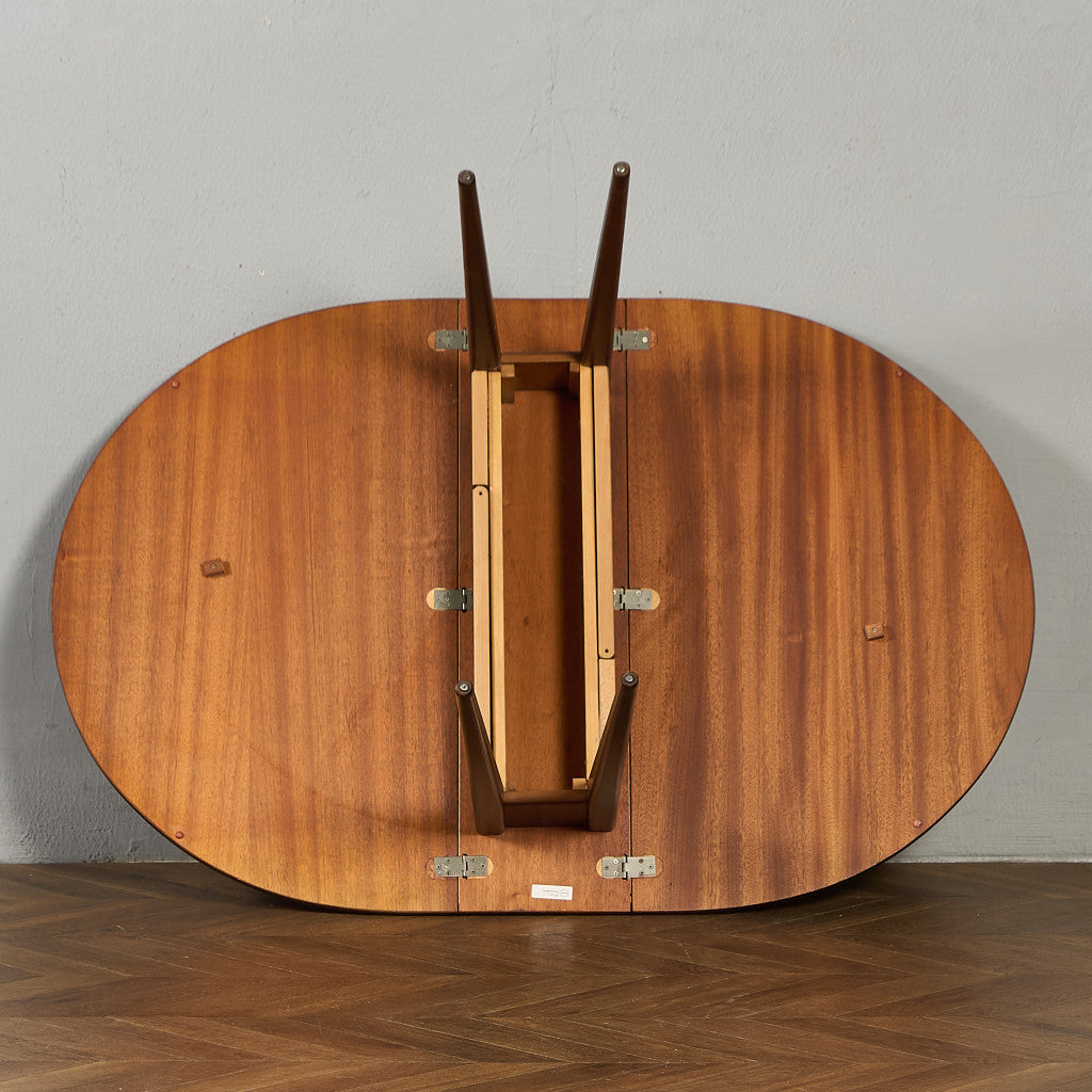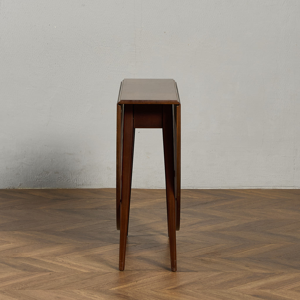 シンプルで洗練された佇まいが印象的なテーブル。シーンに合わせて天板を折りたたむことができ、両天板を閉じると幅が270mmとコンパクトに収まります。実用的でありながらも作り手のこだわりを感じさせる、北欧の年代物とも相性の良いヴィンテージファニチャーです。