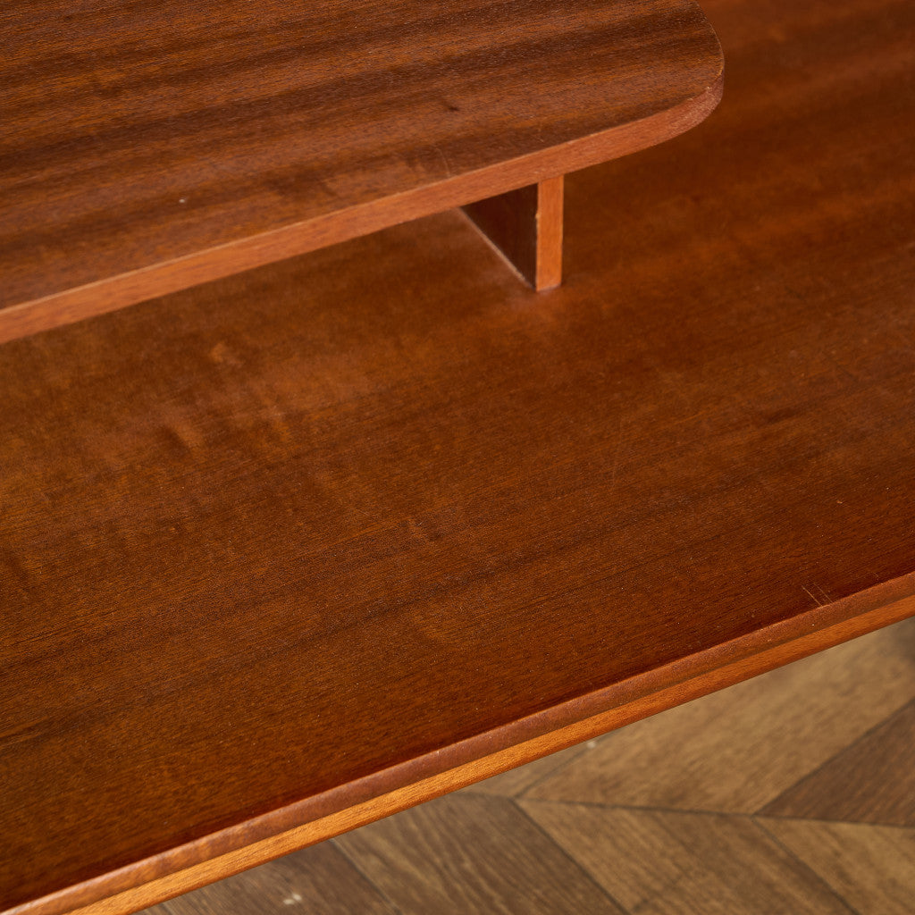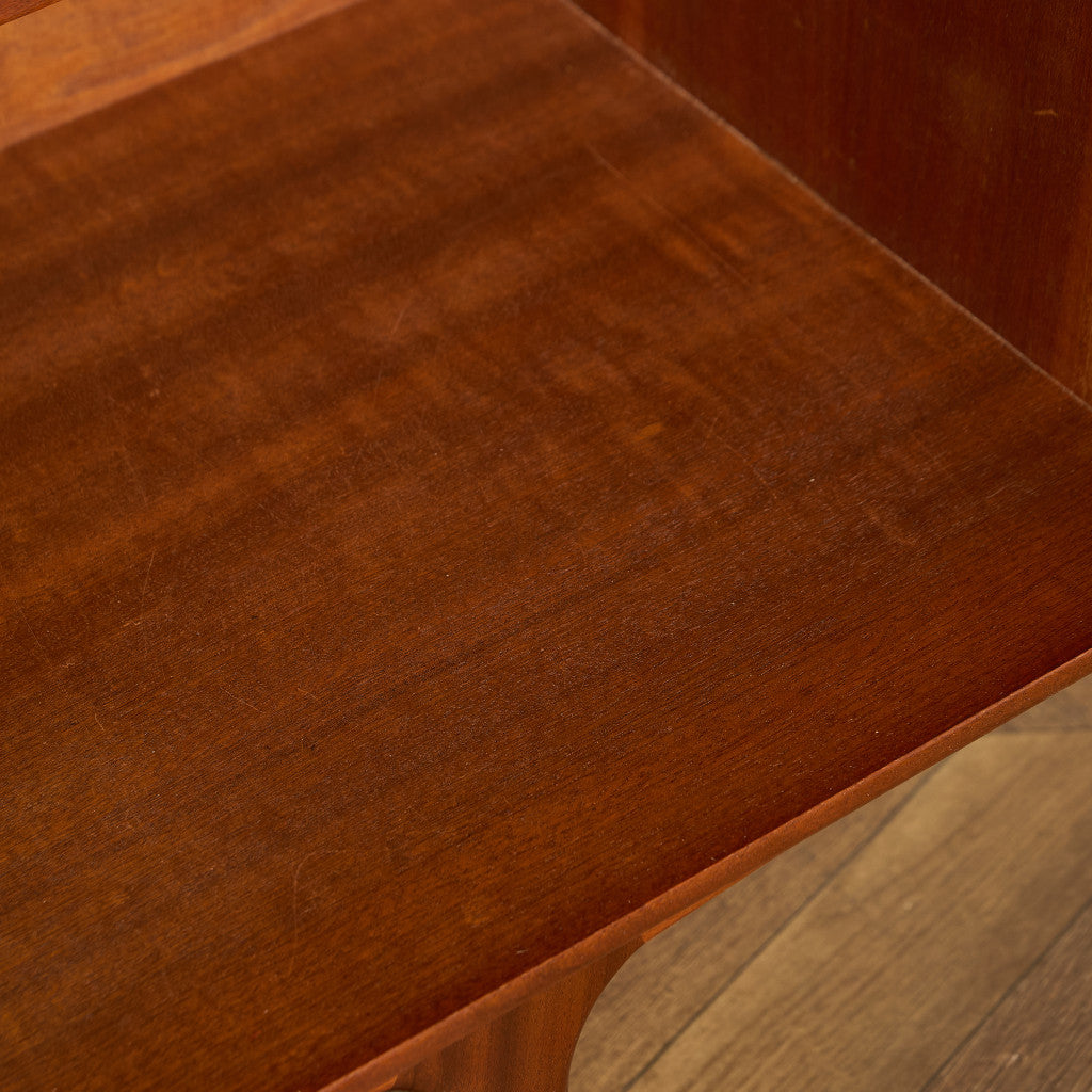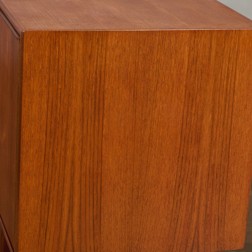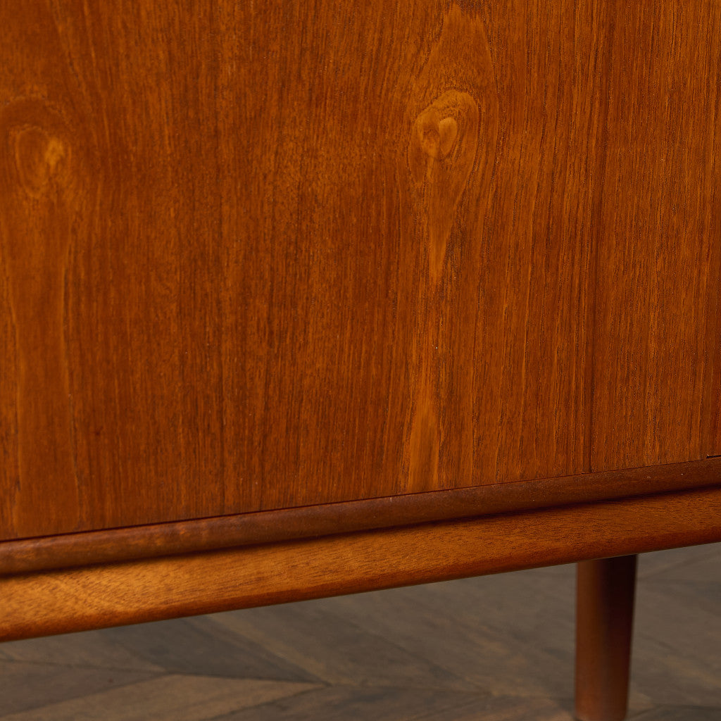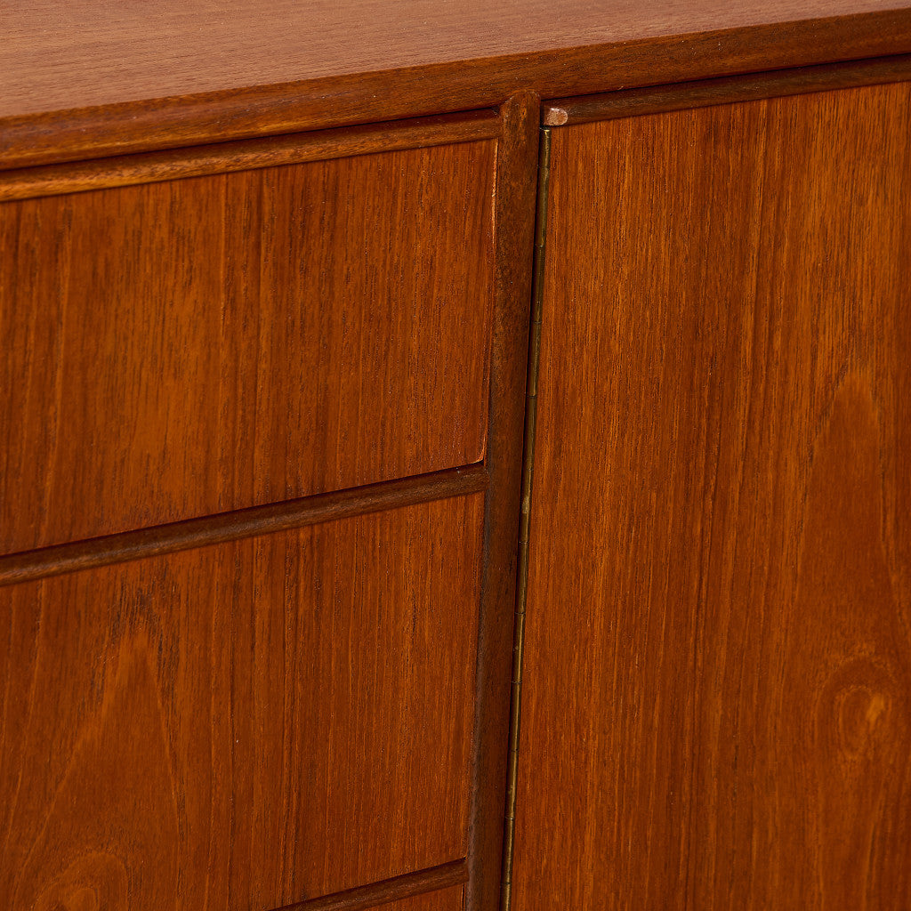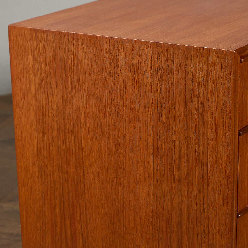 取手やなめらかな脚フレームの意匠など、ハイクオリティーなディテールを備えたサイドボード。シンプルなフォルムながら上質な存在感をたたえる一品で、流通量の少ないレアなショートモデルです。英国ミッドセンチュリーの黄金期を代表するA.H.McINTOSH社の傑作であり、チーク材の温かみある木目と彫刻的な曲線美が織りなす、北欧家具にも比肩する洗練されたデザインが魅力です。コンパクトながら収納力も十分で、現代の住空間にこそ真価を発揮します。ヴィンテージとしての希少価値と普遍的な美しさを兼ね備えています。