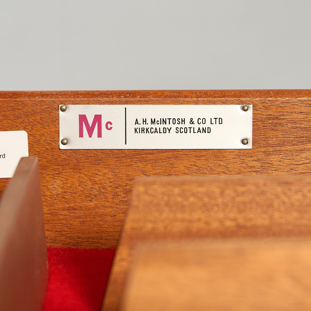 スコットランドの老舗家具ブランド、A.H.マッキントッシュ社。50年代〜70年代、英国のスカンジナビアスタイルブームにはチーク材を用いたデンマークスタイルの家具シリーズを展開。G-PLANやNathan社と並び、北欧スタイルイギリスヴィンテージを代表するメーカーです。スタイリッシュなデザインと素材、造りの良さは現在のイギリスでも非常に高く評価されており、世界中にコレクターが存在しています。