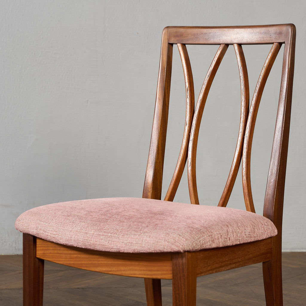 イギリスにおいてミッドセンチュリーを代表するブランド G-PLAN(ジープラン) による、Victor Bramwell Wilkins(ビクター・ブラムウェル・ウィルキンス ) デザイン、Fresco(フレスコ) エックスバックダイニングチェア(カーブバックチェア4556D) です。