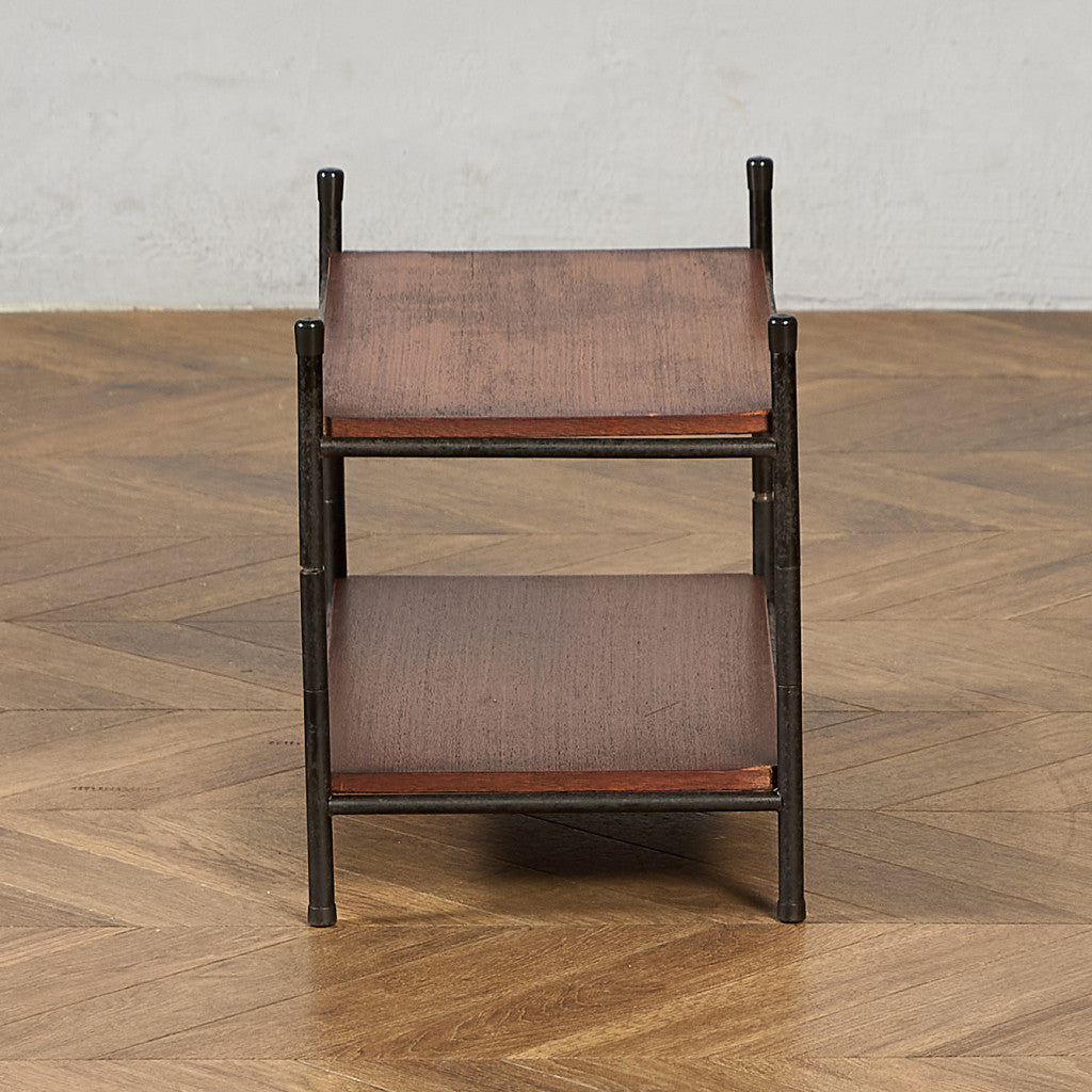 無骨なアイアンフレームと天然木のあたたかな木目が美しく調和したオープンシェルフ。抜け感のある構造が圧迫感を抑え、空間をすっきりと広く演出します。無骨さの中にやわらかな趣を感じさせる、味わい深い一品です。